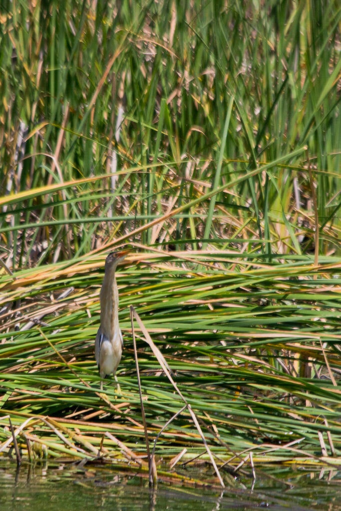 Maar omdat de mooiere graslanden vanaf de parkeerplaats bezien achterin het gebied liggen én omdat we daar eerder ook Witvleugelstern zagen besloten we nog even door te lopen. In de bocht (het is er echt maar één) stonden twee mensen aandachtig te turen. Ik vermoedde de Witvleugelsterns. Die zag ik niet. Wel hoorde ik Woudaap (Botaurus minutus). Dacht ik. Ik ben daar altijd wat voorzichtig mee. Het zijn geen algemene soorten en zo vaak heb ik ze nog niet gehoord. Dus ik hield mijn mond. De man die naast mij stond zei: 'Hoor jij wat ik hoor?' Moeilijke vraag. Ik koos ervoor om te zeggen: 'Woudaap?' 'Inderdaad, de eerste hier sinds de jaren tachtig!'. Ik had nog moeten vragen naar de Witvleugelsterns, maar dat durfde ik niet.